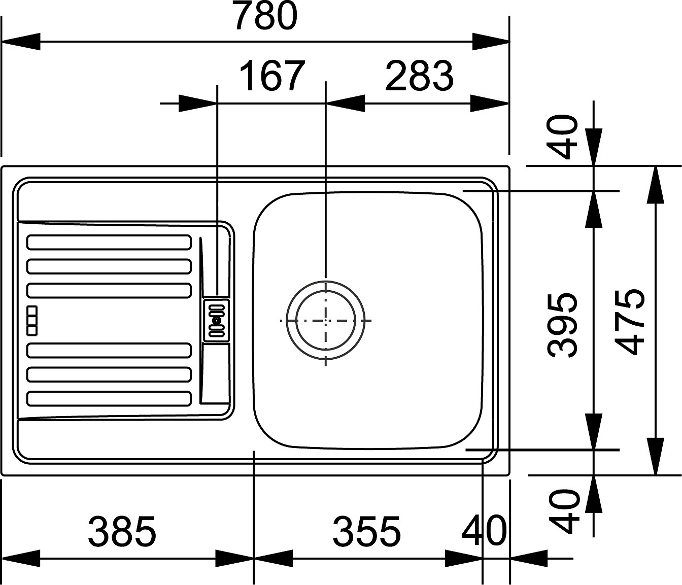 Franke Euroform évier - EFL 614-78 Acier inoxydable, 780x475 mm + siphon (101.0286.768)