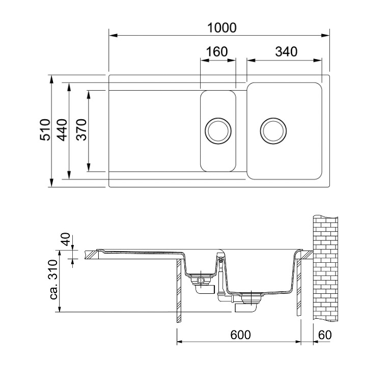 - Trou pour robinetterie:Non