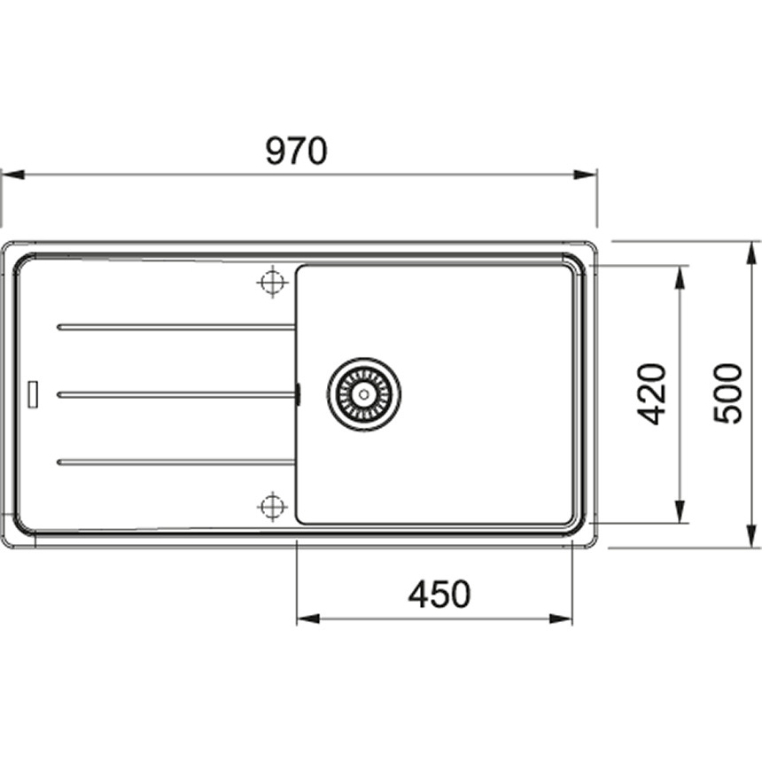 Caractéristiques de l'Evier 97x50cm avec égouttoir réversible, Fragranit +, Pierre grise, Franke Basis BFG 611-97 (BFG611-97SK) :