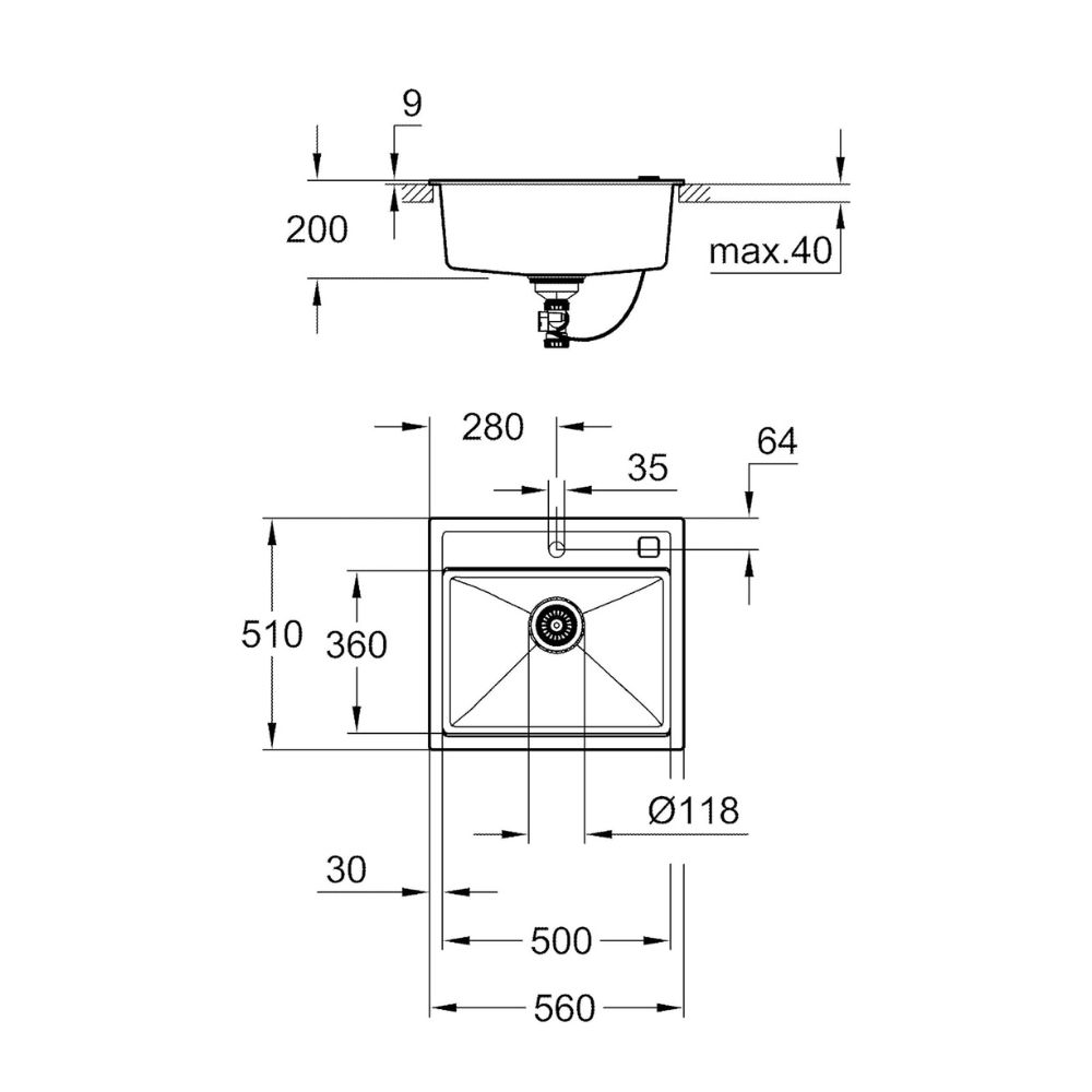 Grohe K700 evier de cuisine composite, 56 x 51 cm, à encastrer (G31651AT0)