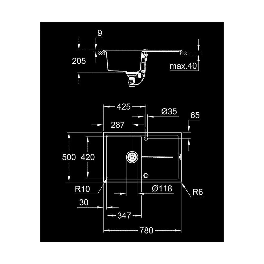 Caractéristiques de l'évier composite avec égouttoir, Grohe K400, noir (G31639AP0) :