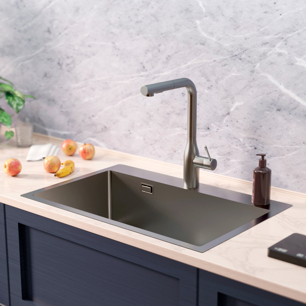 Ceramia Timeless Évier de cuisine encastrable en inox 304, 68x45x21 cm, 1 bac, Gun Metal brossé PVD