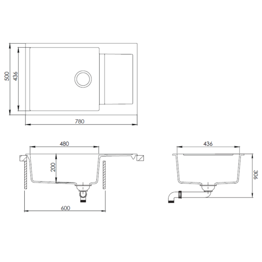 - Bonde, siphon, accessoires de montage compris