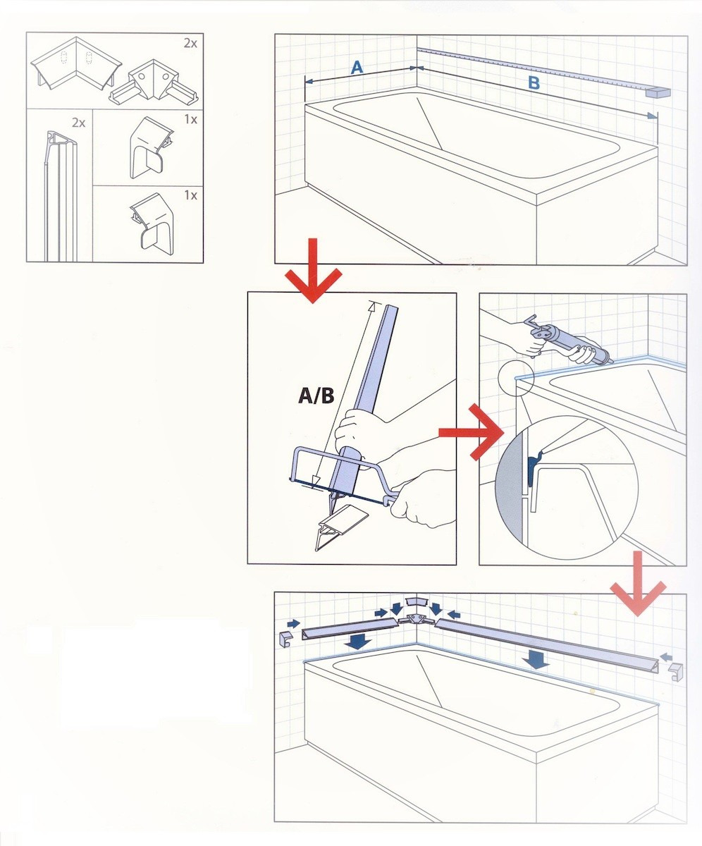 Caractéristiques de la baguette de recouvrement, 2x1950mm pour camouflage des joints de baignoire, Blanc (PVL0) :