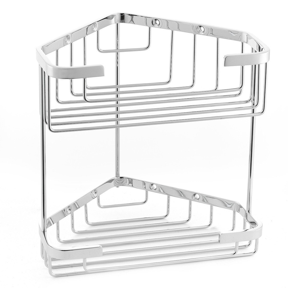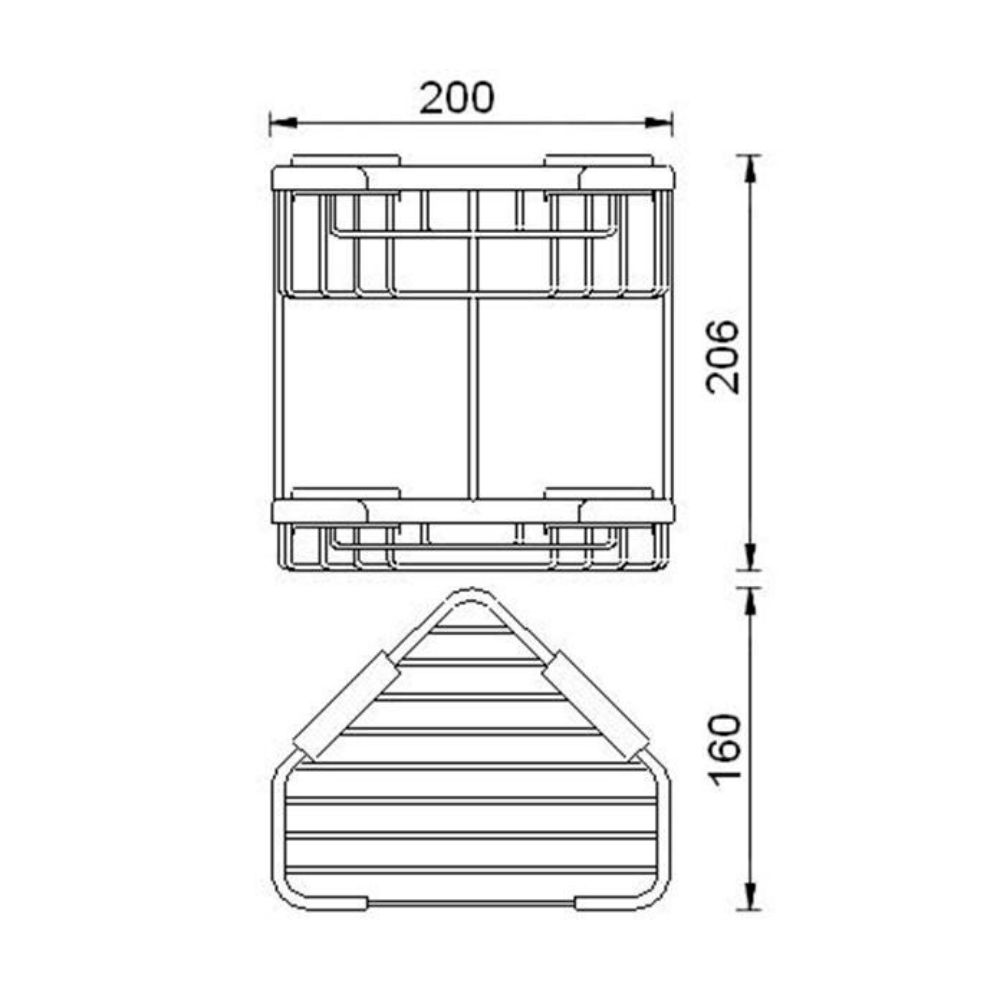L’étagère murale d’angle à deux niveaux, de dimensions 200x206x160 mm, offre une utilisation pratique au quotidien, par exemple pour le rangement de produits cosmétiques.