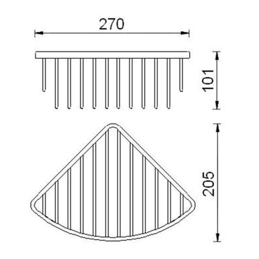 Pratique, l’étagère murale filaire d’angle, de dimensions 270x205x101 mm, trouve facilement son utilité à la maison, par exemple pour le rangement de produits cosmétiques.