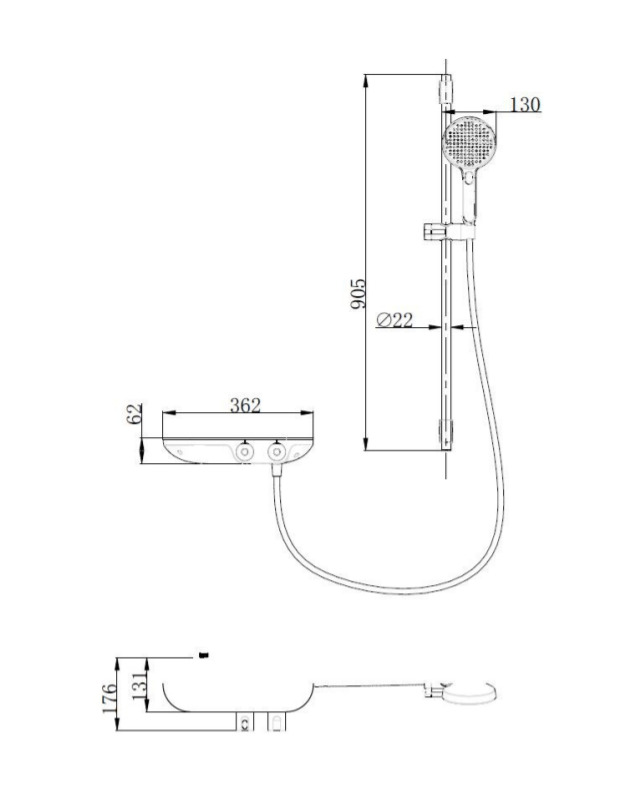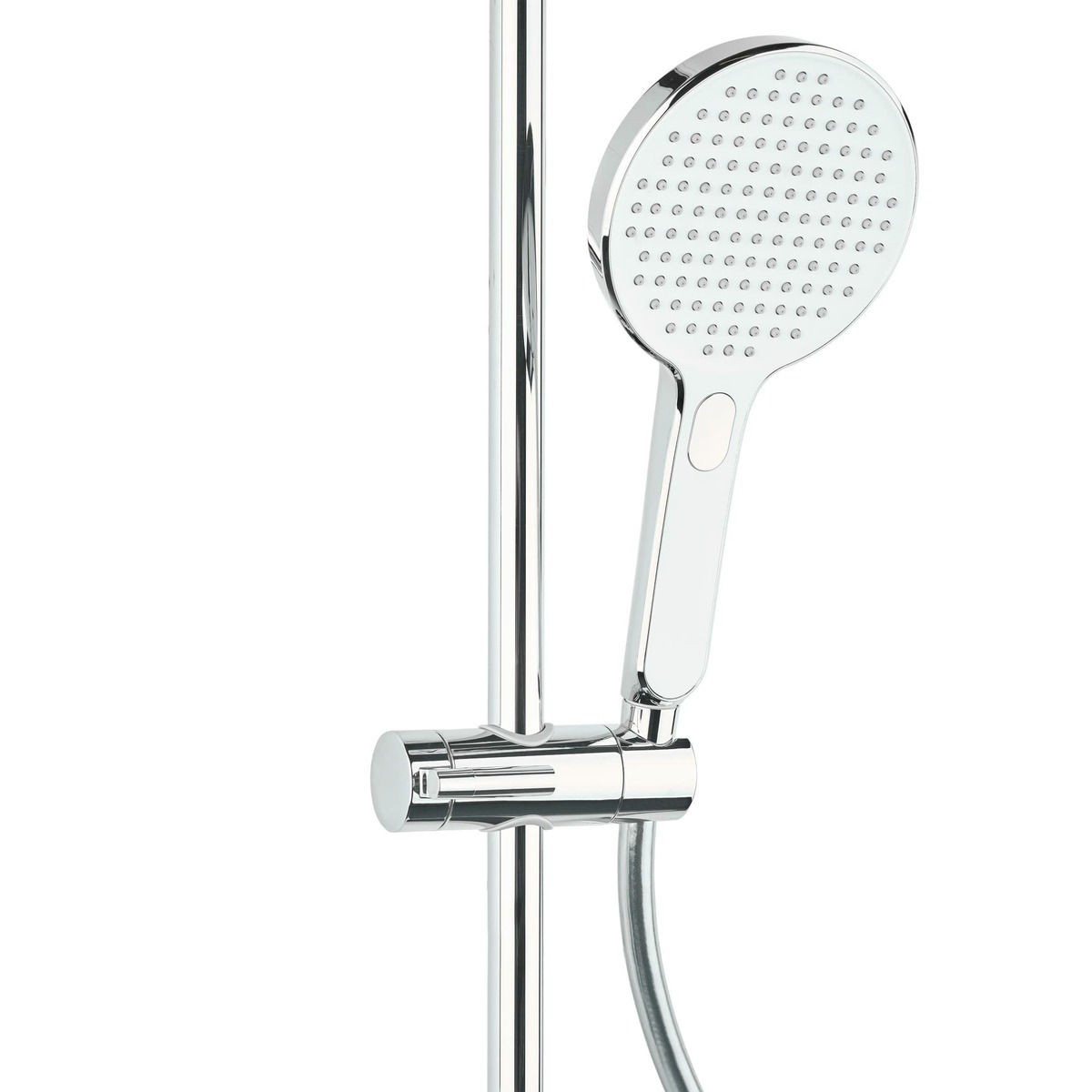 Caractéristiques de l'Ensemble de douche avec douchette 3 jets, mitigeur thermostatique, barre 90.5cm, Chrome/Blanc (SATSSTKPF1) :
