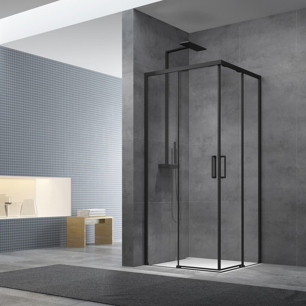 La cabine de douche TEX incarne parfaitement le mariage entre le minimalisme, la nature et le noir. Avec son design carré moderne et ses deux portes coulissantes, elle s'intègre harmonieusement dans un intérieur Japandi. Le noir mat du profil crée un contraste subtil avec le verre transparent, ajoutant une touche d'élégance sans compromettre la simplicité.