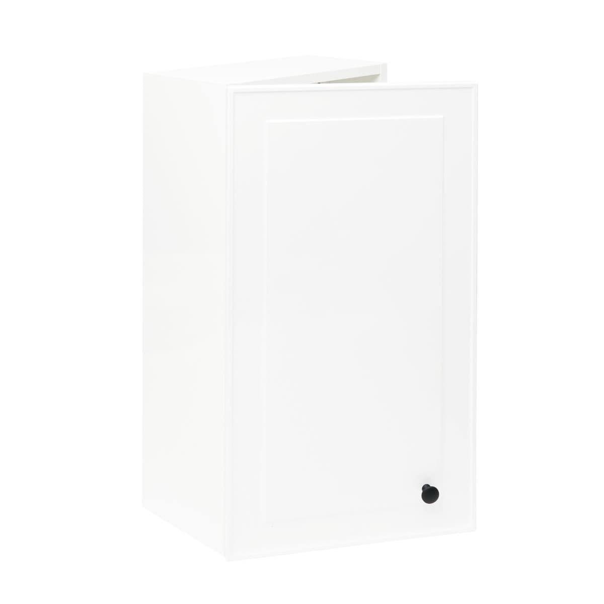 Meuble de salle de bain suspendu bas de couleur blanche, mesurant 40x78,5x22 cm. Ferme avec une porte. La porte a une ouverture à gauche et à droite.
