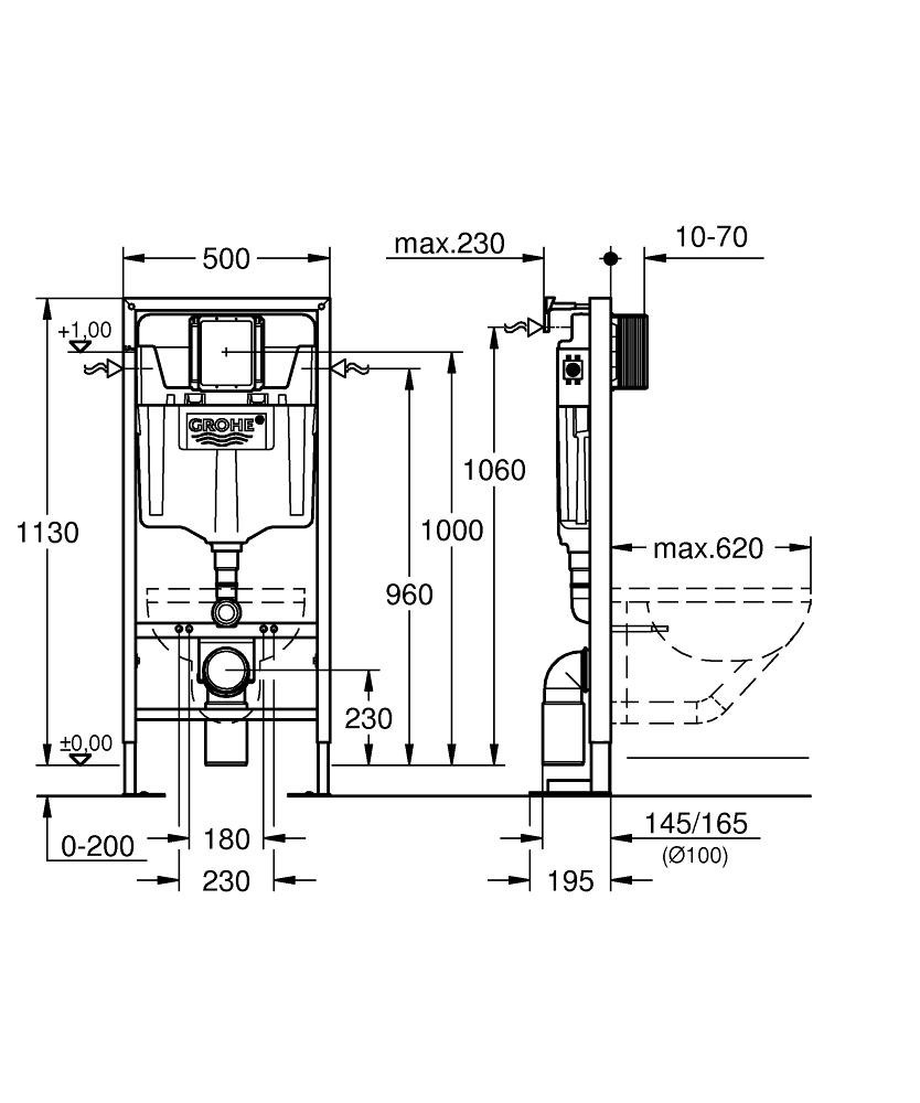 - Grohe RAPID SL BÂTI SUPPORT AUTOPORTANT POUR WC, 1.13 M (39981000)