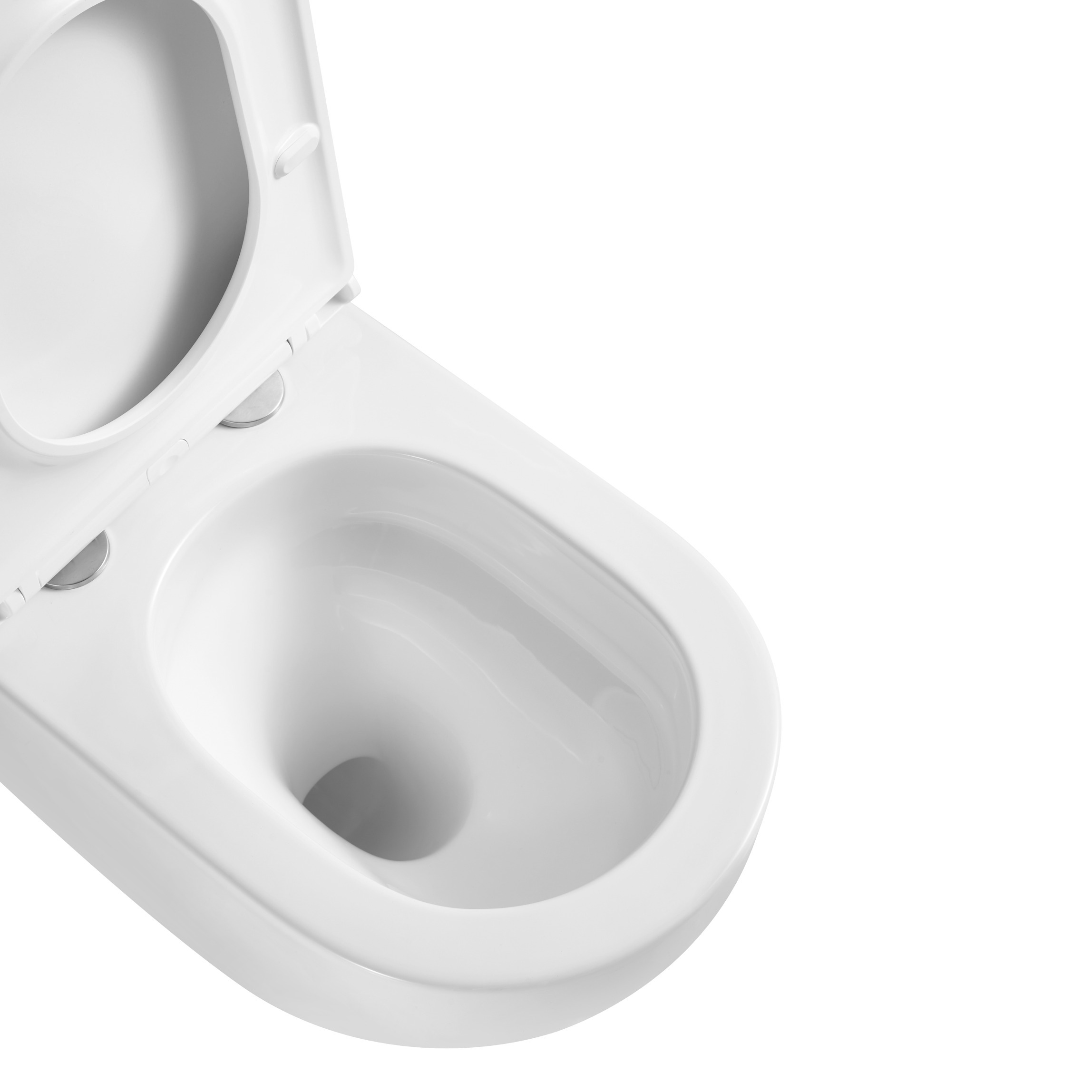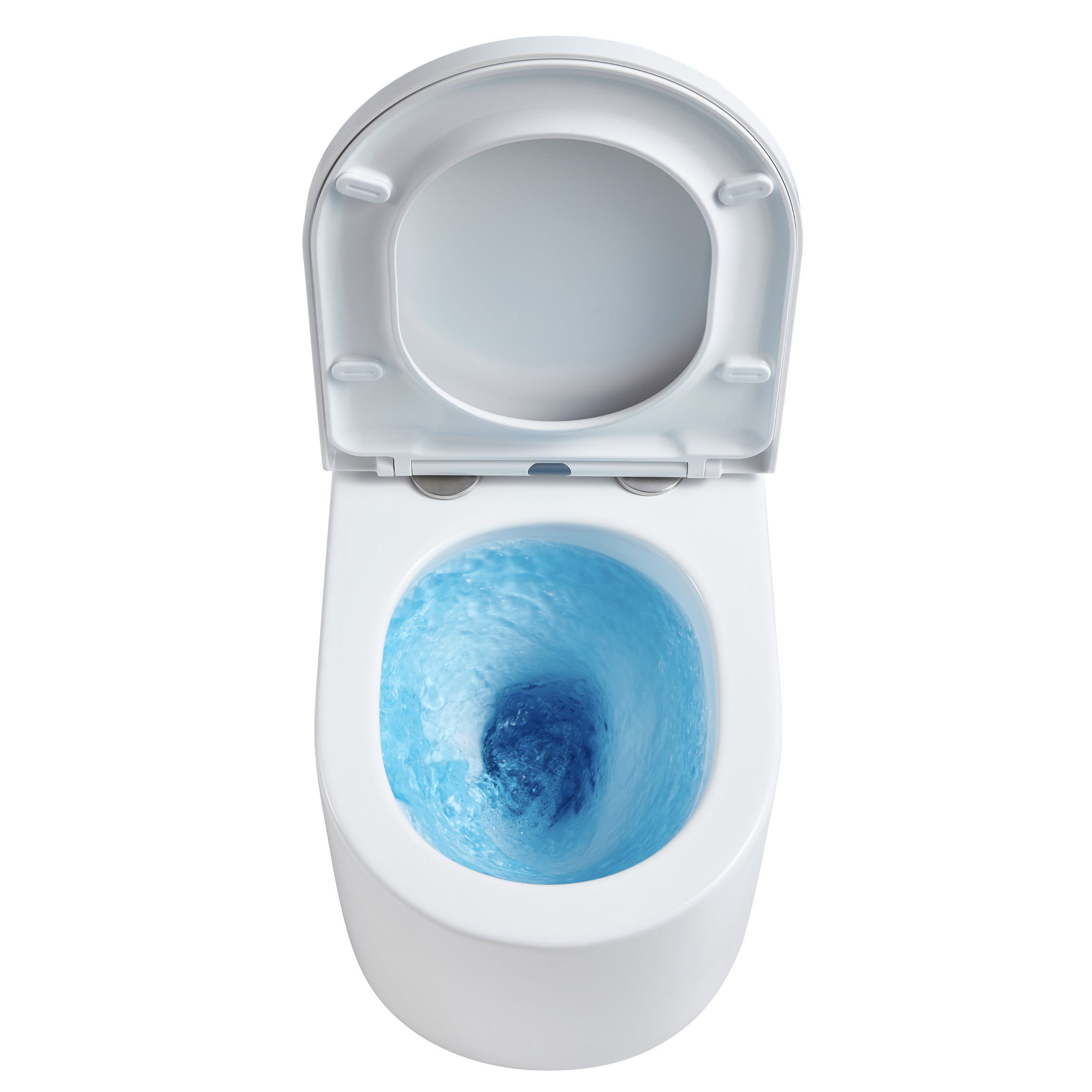 - Confort et Performance : Profitez du rinçage silencieux et puissant de la technologie Tornado Quiet, ainsi que de l'abattant frein de chute, ajoutant confort et tranquillité à chaque utilisation.
