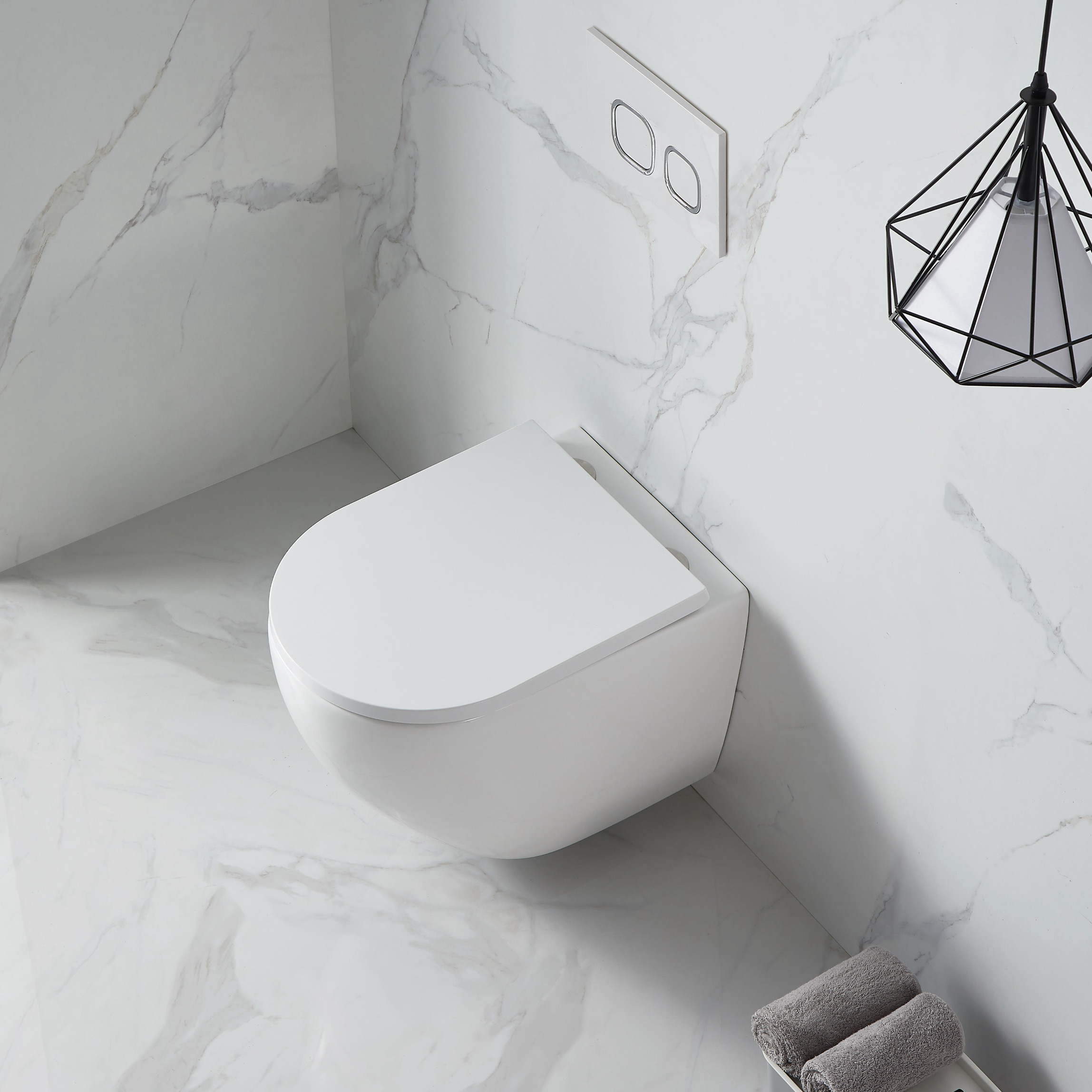 - Swiss Aqua Technologies WC suspendu Fusion sans bride Tornado Quiet et fixations invisibles, abattant frein de chute (SAT67010RTORP)