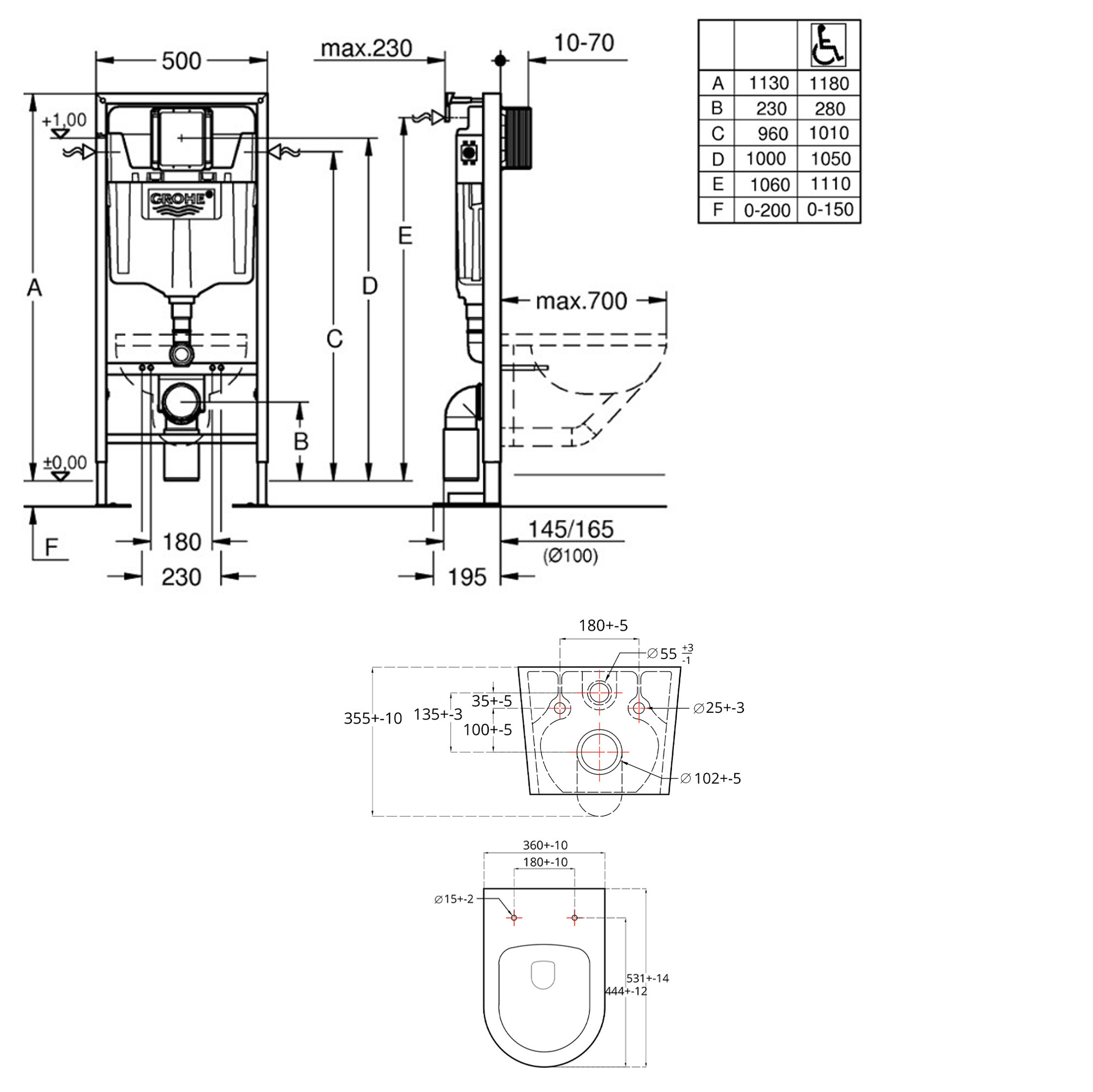 - Grohe SOLIDO Bâti-support autoportant pour WC, 1,13 M (39981000)