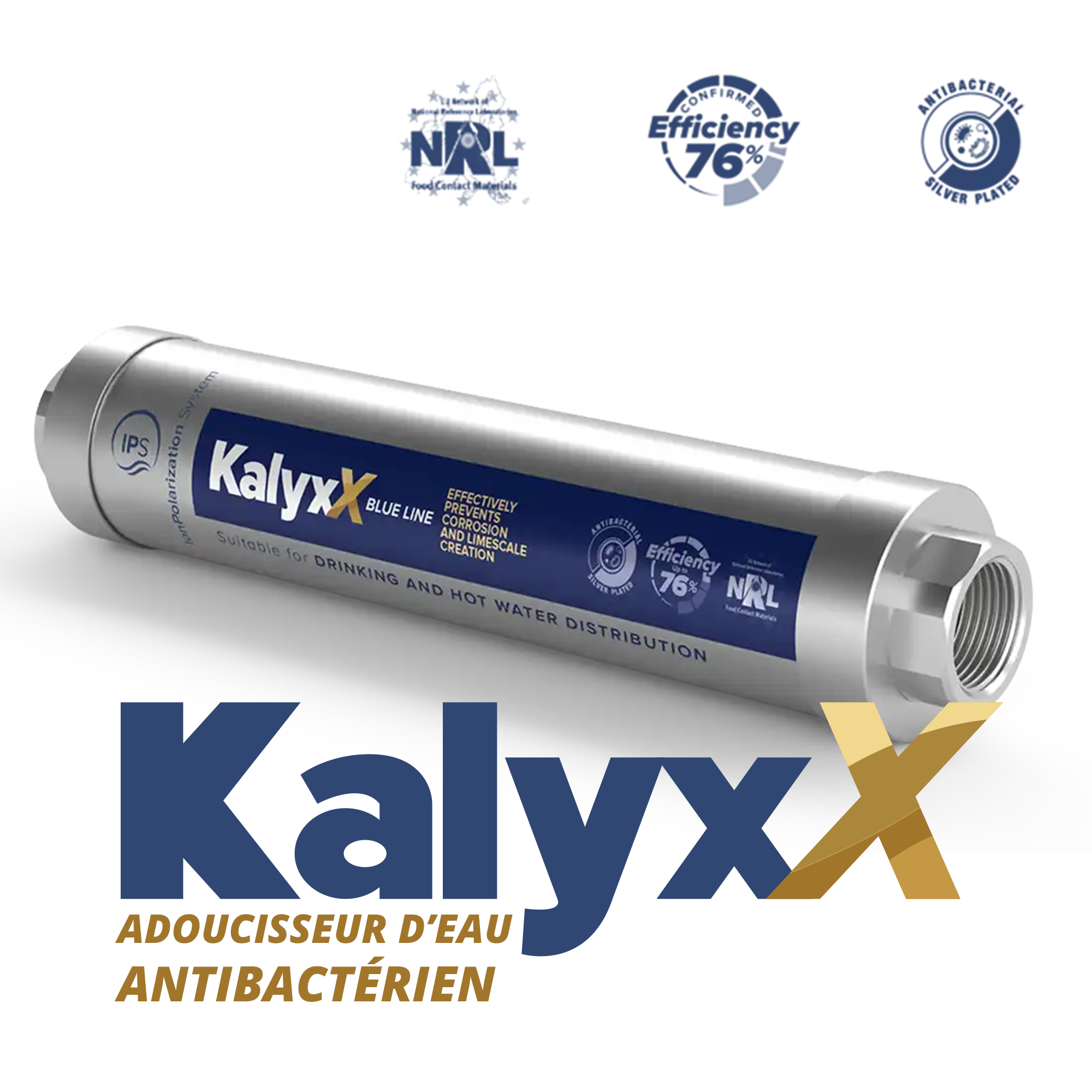 L'IPS Kalyxx BlueLine est la solution idéale à ce dilemme. Cet adoucisseur d'eau innovant conserve les minéraux bénéfiques pour la consommation tout en modifiant la structure du calcaire, le transformant de calcite en aragonite, une forme non adhérente qui ne s'accumule pas et ne cause pas de dépôts. Grâce à la technologie brevetée de Polarisation Galvanique Turbulente (TGP), l'IPS Kalyxx BlueLine améliore la qualité de l'eau sans recours à des produits chimiques ni à une source d'énergie externe. En plus de ces caractéristiques, le modèle BlueLine est doté de pièces argentées qui offrent un effet antibactérien, contribuant à une eau encore plus pure et plus saine. Cette fonction antibactérienne supplémentaire en fait une solution idéale pour des environnements nécessitant une eau de haute qualité sanitaire.