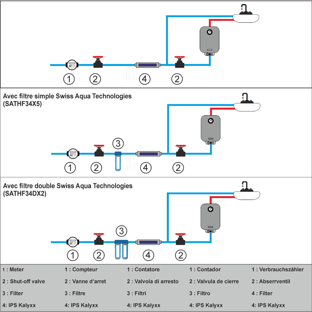 Caractéristiques de l'adoucisseur d'eau Anticalcaire Antibactérien innovant IPS Kalyxx BlueLine G3/4 " femelle Swiss Aqua Technologies (IPSXKBG34) :