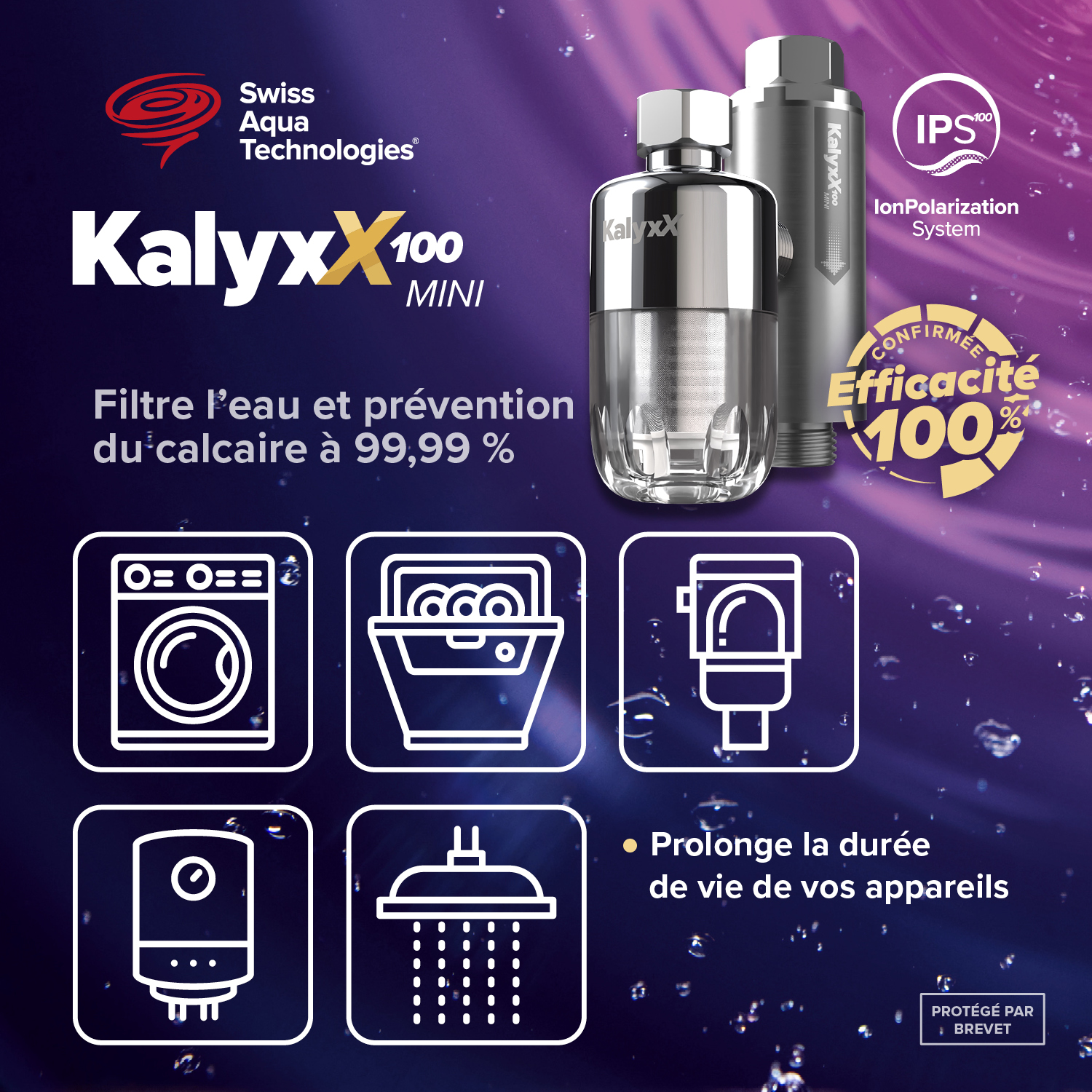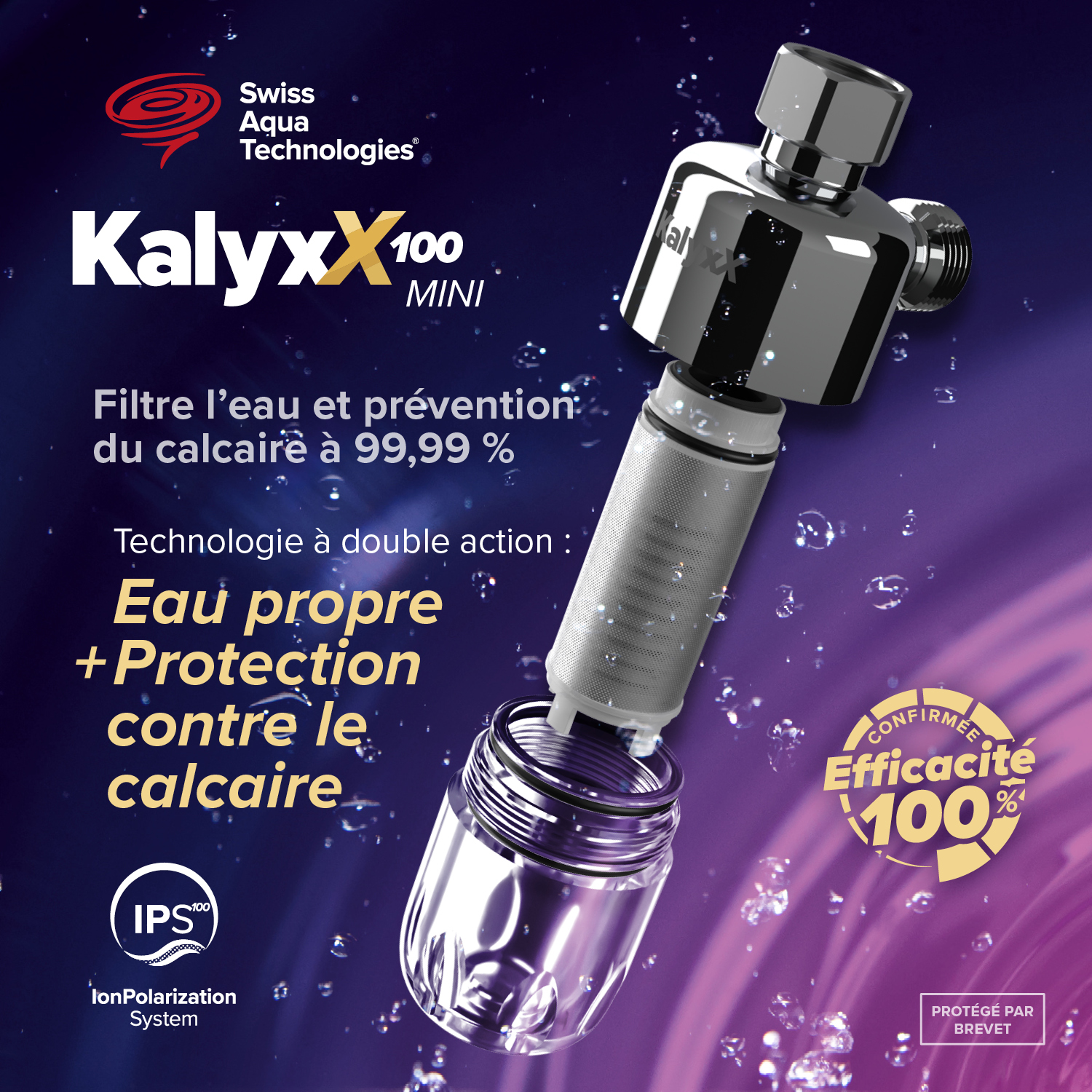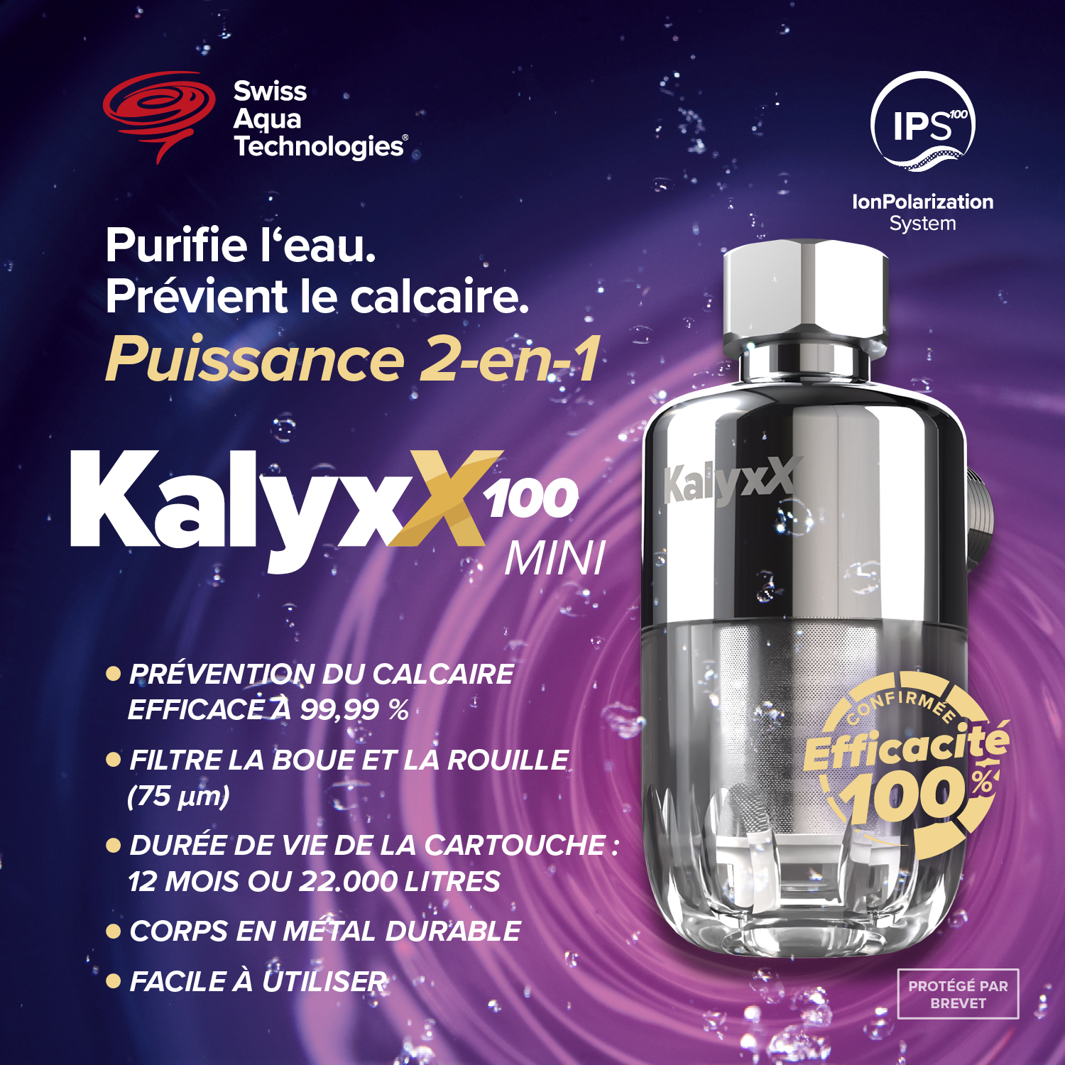 Grâce à la technologies brevetée de Polarisation Galvanique Turbulente (TGP) combinée à un système magnétique avancé, l'IPS 100 Kalyxx Active offre une efficacité accrue, atteignant 99,99% de réduction de calcaire. Ce dispositif innovant fonctionne sans produits chimiques ni source d'énergie externe. Cette fonction antibactérienne, couplée à une efficacité anticalcaire améliorée, en fait une solution idéale pour des milieux nécessitant une eau de haute qualité sanitaire.