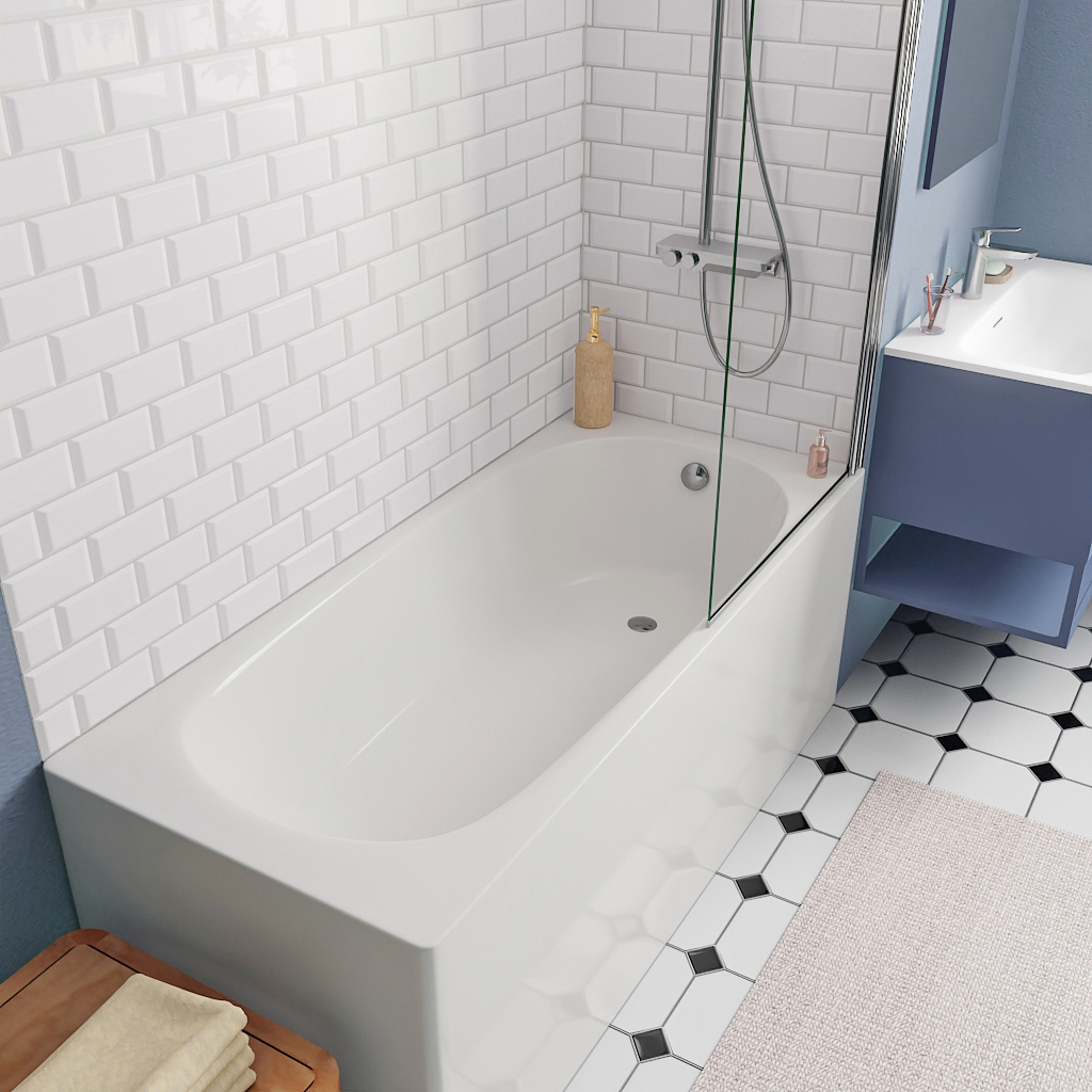 KOLO by Geberit 170x70 cm Ensemble baignoire Opal Plus universelle + Pare baignoire pivotant chrome + pieds (XWP1270000-SETP)