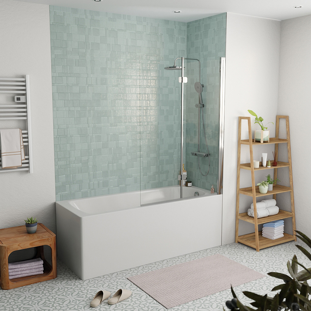 Swiss Aqua Technologies Pare-baignoire pliable, 2 parties, en verre, 150x105cm, Chrome (SATVZSKNEW105):