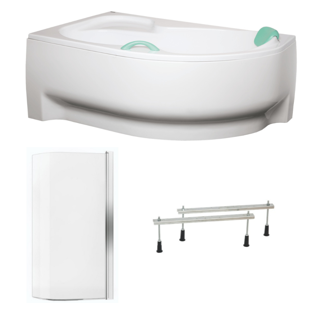 Caractéristiques de la baignoire d'angle en acrylique, 160x100 cm, droite + tablier 160 cm + pare-baignoire + pieds, Laguna Fortuna Plus, blanc (FO1600PPLUS-SETP1) :