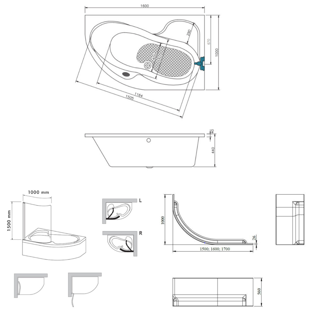 - Pour baignoire d'angle Laguna Fortuna Plus 160, 170cm