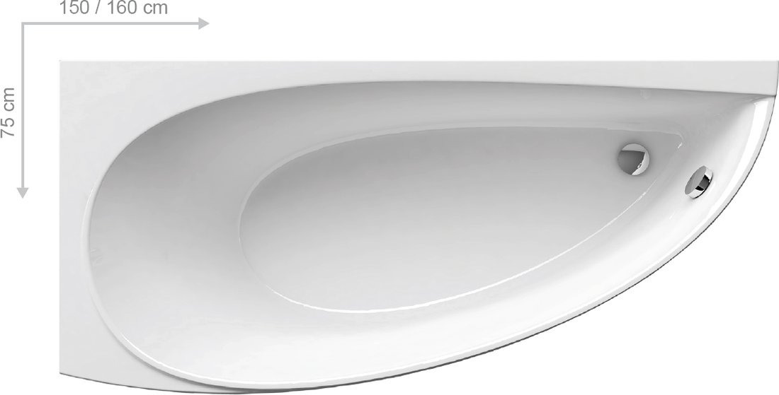 - Ravak Avocado Baignoire d'angle, style asymétrique gain de place, orientation droite 150x75 cm, Acrylique blanche (CS01000000)