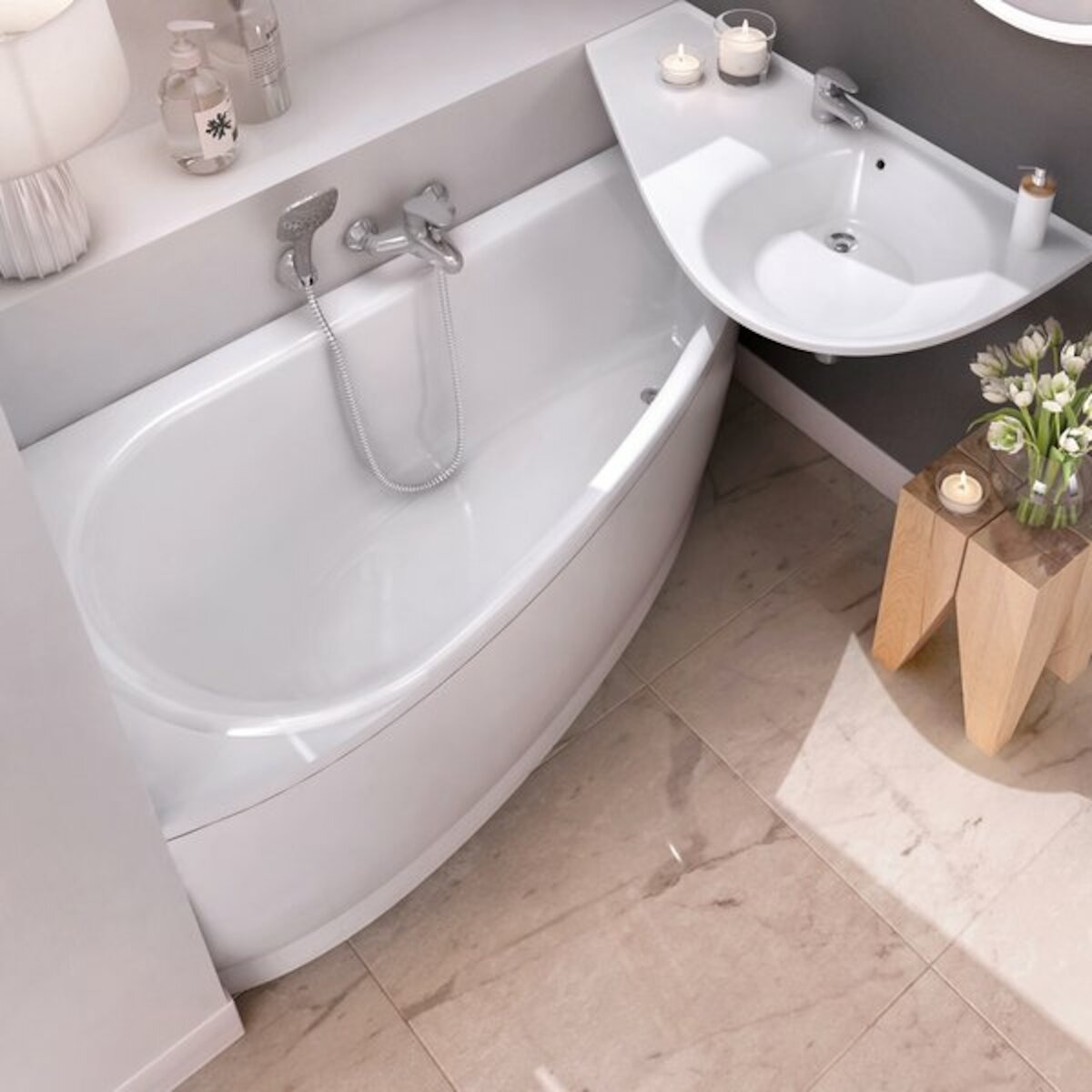 - Type de baignoire:Gain de place / Angle