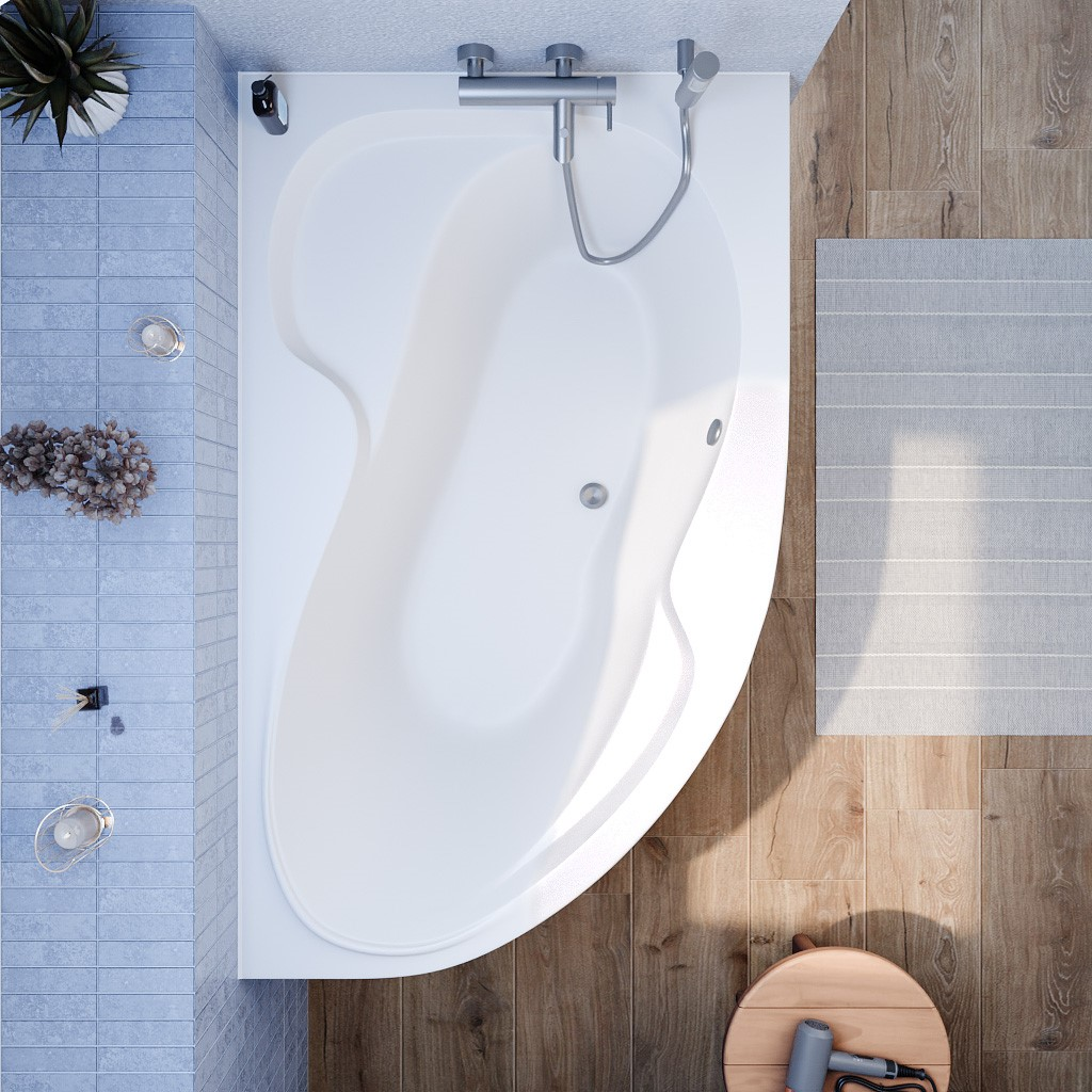 160 x 100 cm Fortuna Plus baignoire d'angle orientation droite en acrylique, Blanc (FO1600PPLUS) :
