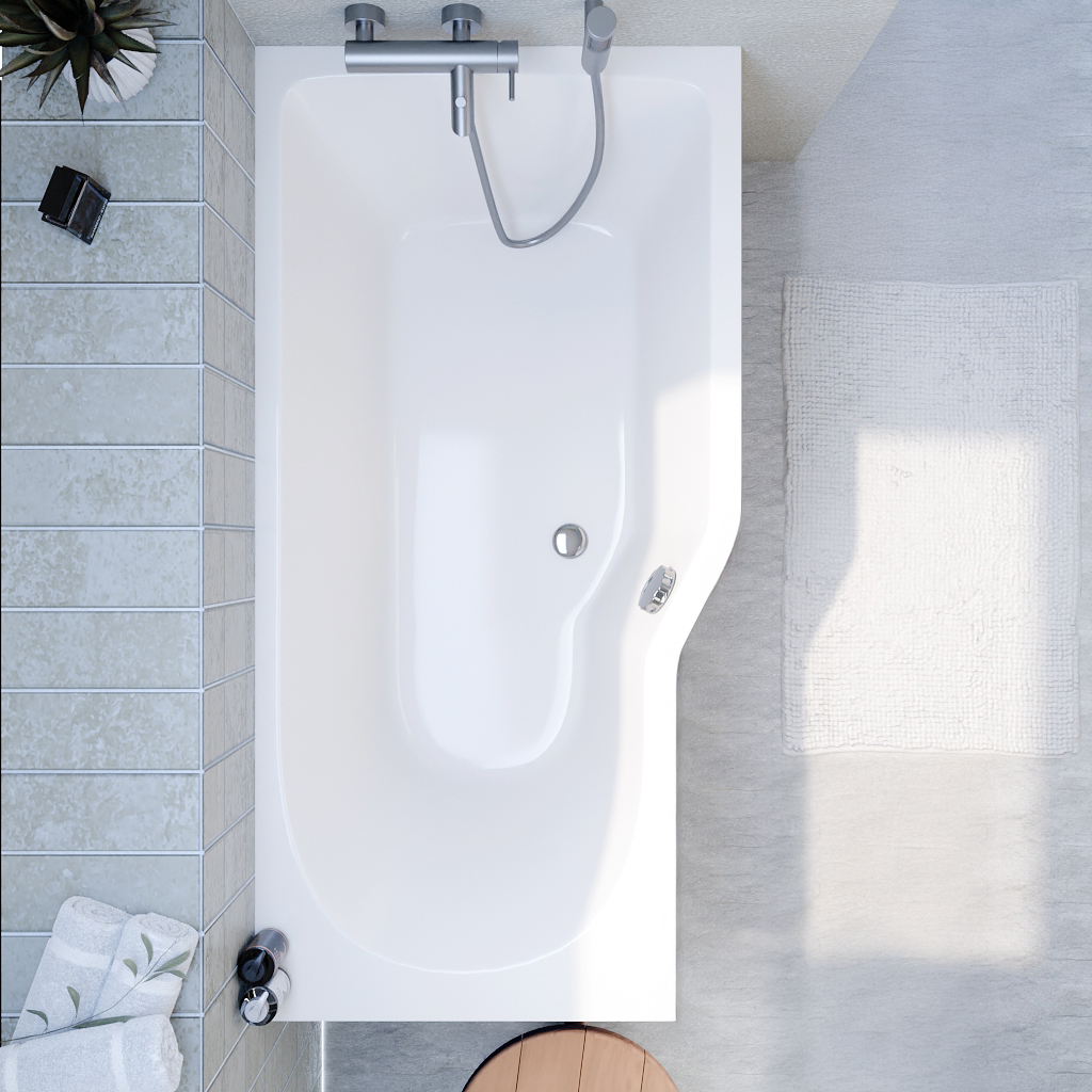 160x80 cm Beata Plus baignoire bain douche asymétrique en acrylique positionnement droite, blanc (BE1600PPLUS) :