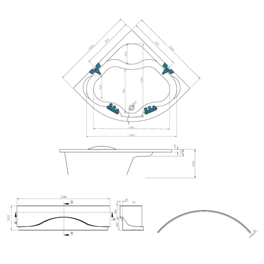 - Siko Laguna Syntia Plus Baignoire d'angle, 150x150 cm, acrylique, gauche et droite, Blanc (SY1500PLUS)