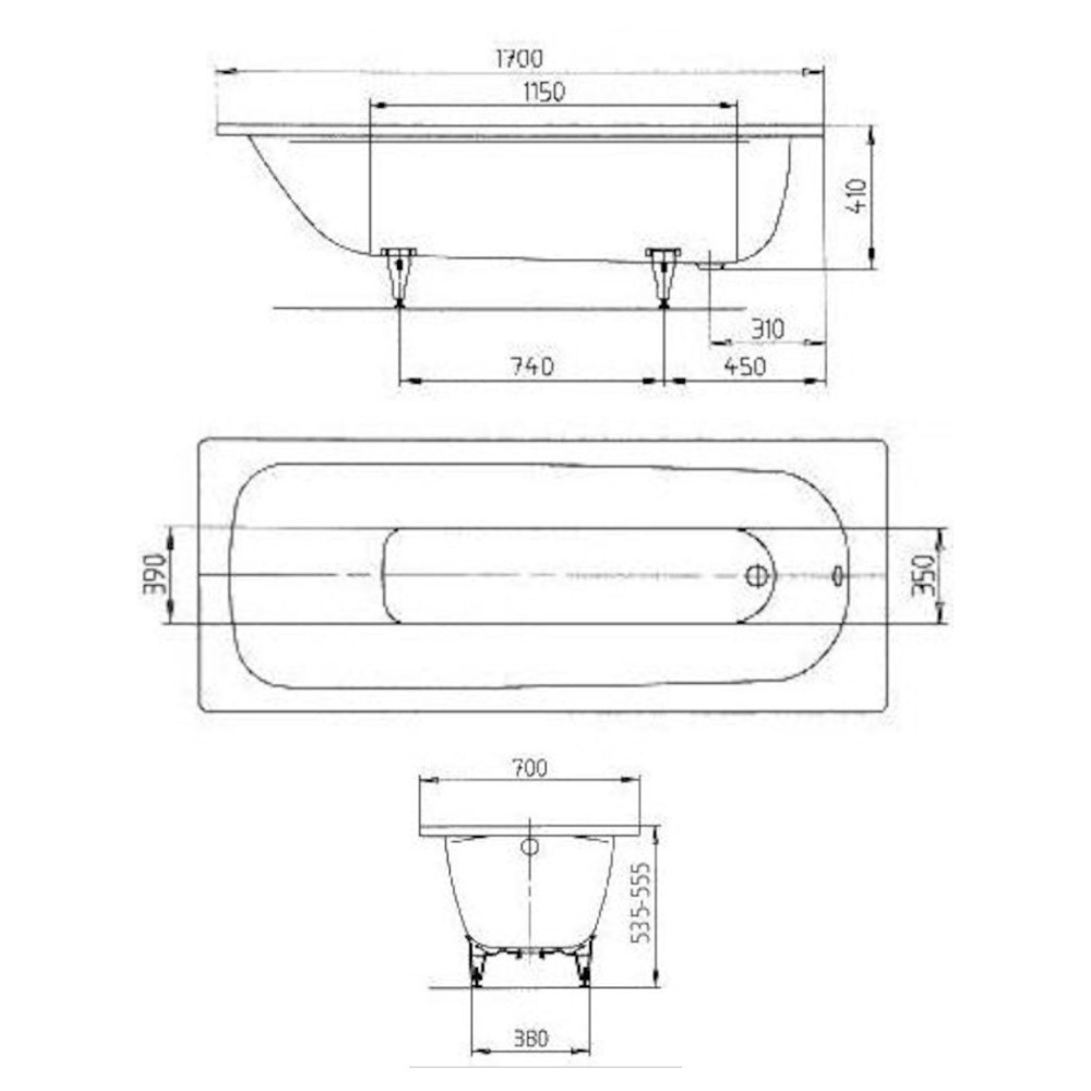 Caractéristiques de la Saniform Plus Baignoire rectangulaire avec pieds 170x70 cm acier émaillé + , Blanc alpin (111800010001-SET) :