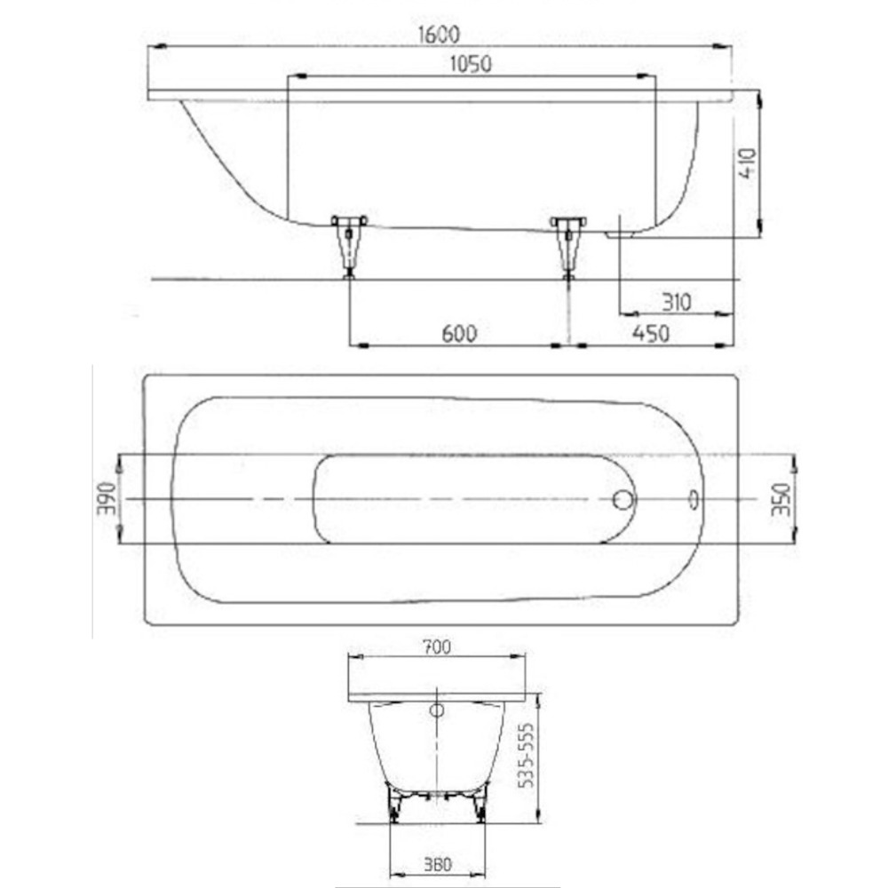 Caractéristiques de la baignoire rectangulaire Saniform Plus avec pieds 160x70 cm acier émaillé, Blanc alpin (111700010001-SET) :