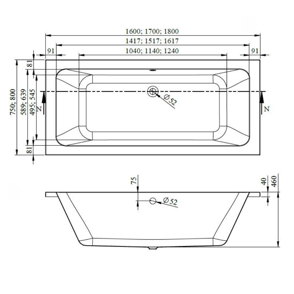 - Baignoire à bac rectangulaire orientation gauche et droite
