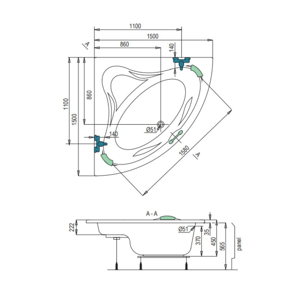 - Type de baignoire:Angle