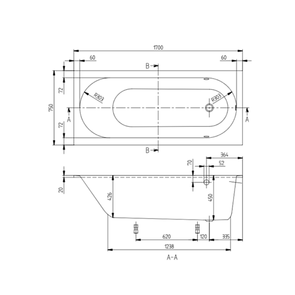 • Pieds baignoire:Fourni