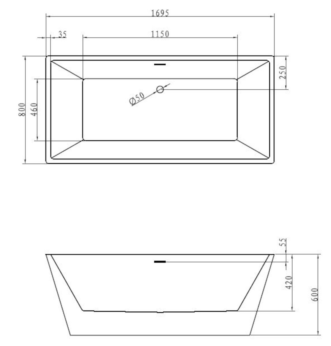 Caractéristiques de la baignoire îlot Mary 170x80 cm acrylique, blanc (MARY1700) :