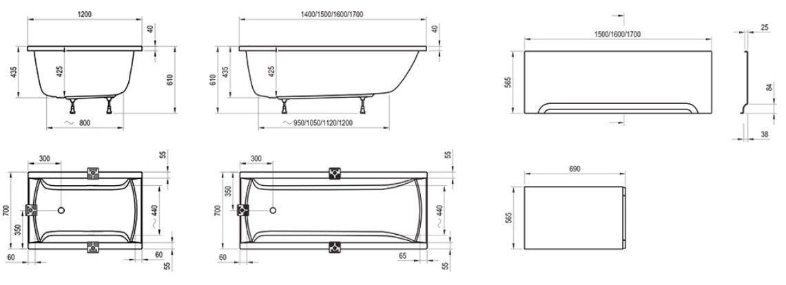 Ravak Classic 150 x 70 cm Baignoire droite en acrylique, sans pieds, blanc (C521000000)
