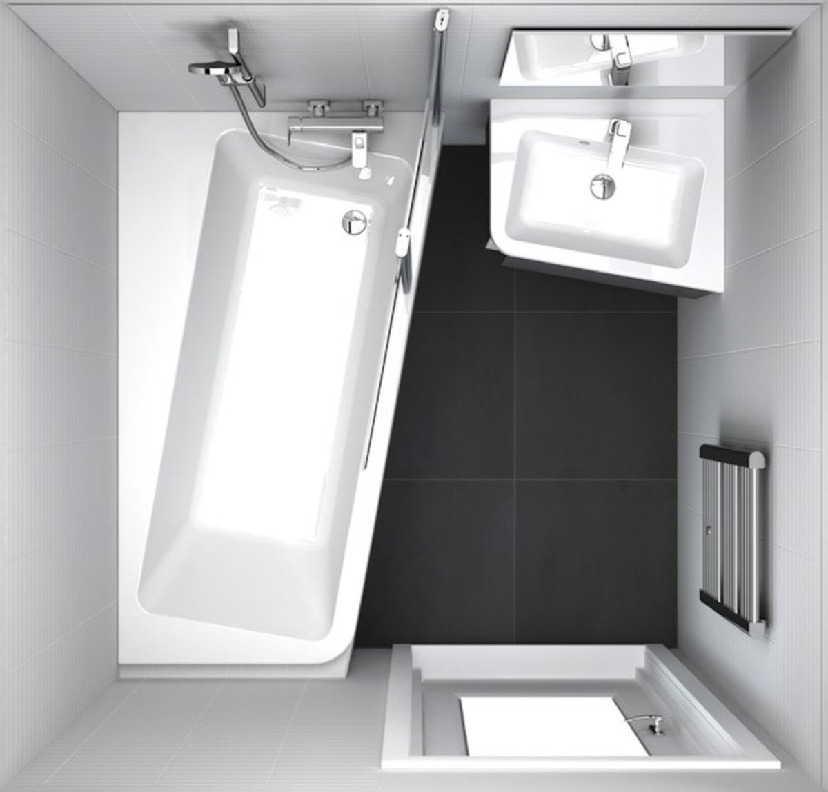 S’il est impossible d’installer simultanément une cabine de douche et une baignoire dans votre salle de bains, choisissez une baignoire asymétrique. Vous obtiendrez de manière avantageuse un grand espace dédié au bain par rapport à la place que prendrait une baignoire. Il s’agit d’une baignoire destinée à un angle de salle de bains, mais qui n’a pas les mêmes longueur et largeur, comme c’est le cas pour les baignoires d’angle. Elle se situe à mi-chemin entre les baignoires d’angle et les rectangulaires.