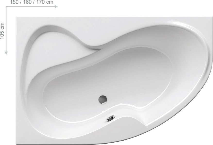 Caractéristiques de la Baignoire asymétrique 160 x 105 cm orientation droite, Acrylique, Blanc, Ravak Rosa II (CL21000000) :