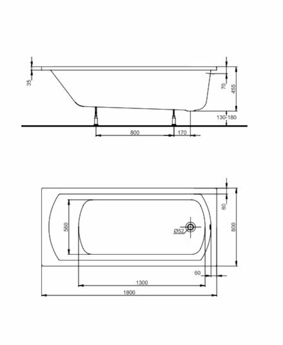 KOLO by Geberit Perfect 180 x 80 cm Baignoire droite avec pieds en acrylique, blanc (XWP1080000)