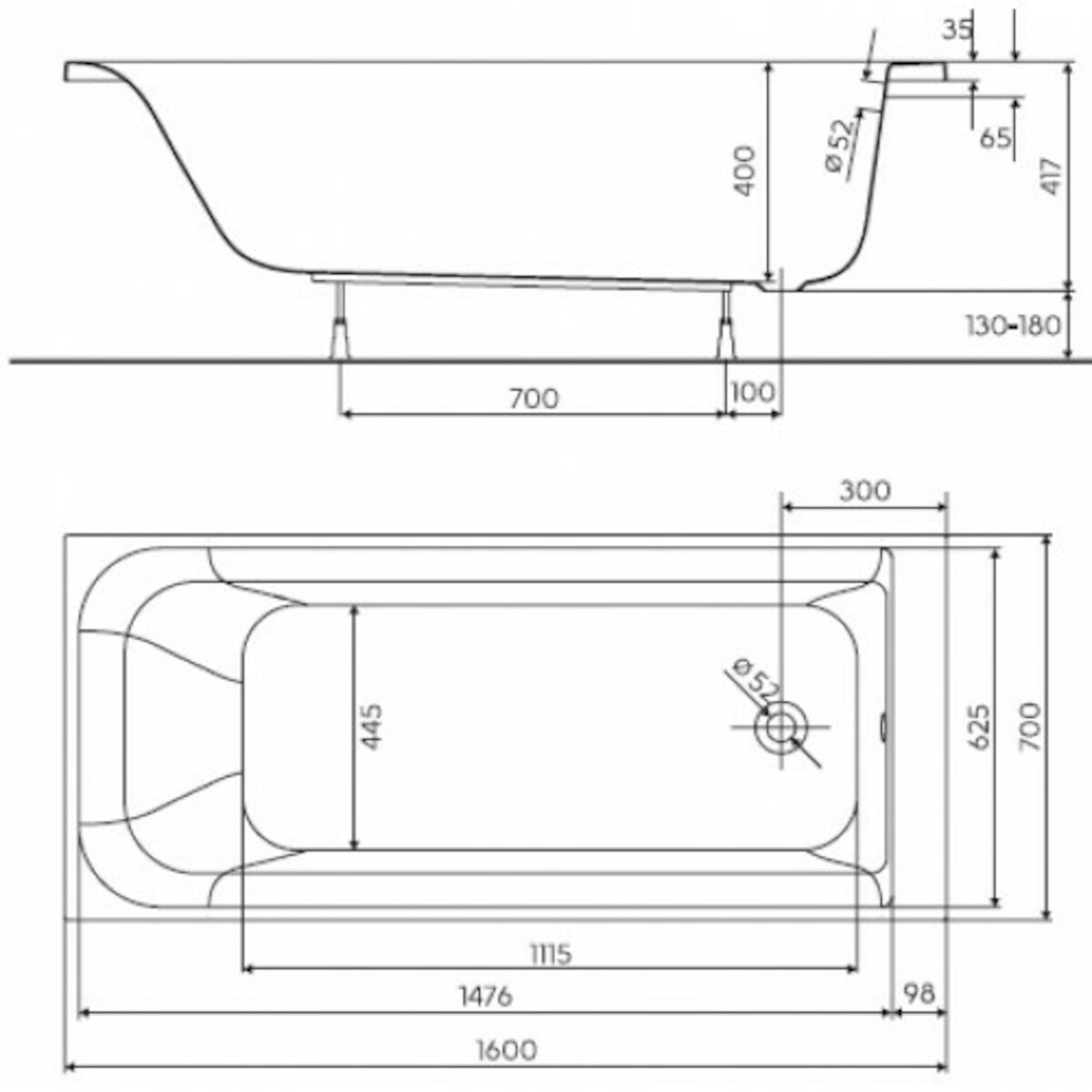 KOLO by Geberit Rekord 160 x 70 cm Baignoire droite avec pieds en acrylique, blanc (XWP1660000)