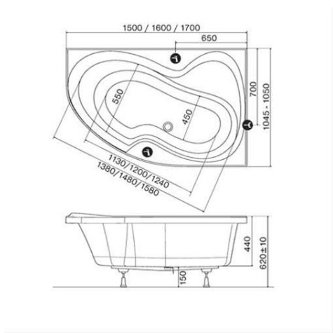 Caractéristiques de la Baignoire d'angle orientation gauche 150x105 cm en acrylique, Blanc (RO1500NEWL) :