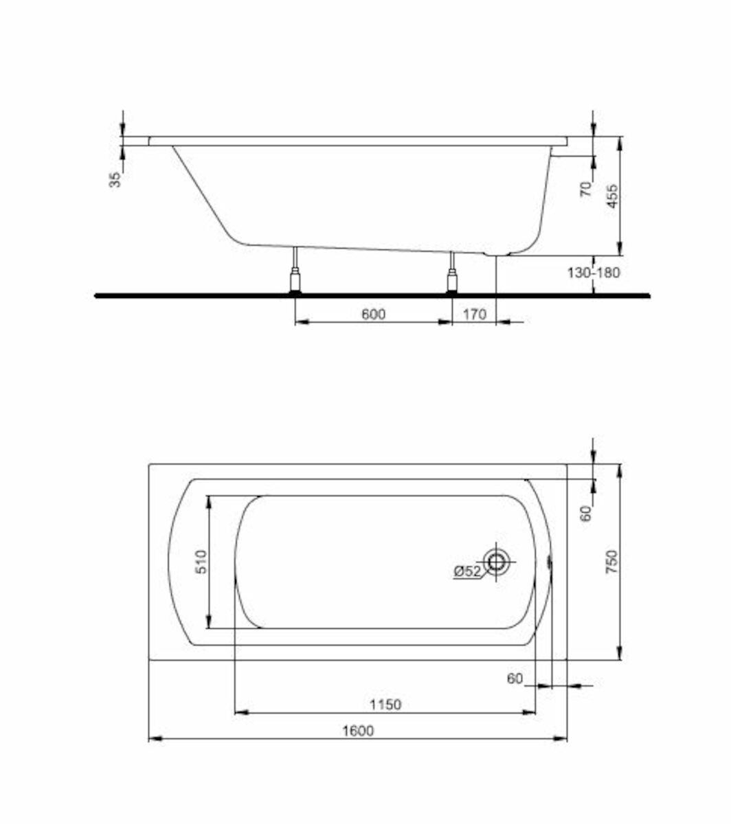 KOLO by Geberit Perfect 160 x 75 cm Baignoire droite avec pieds en acrylique, blanc (XWP1060000)