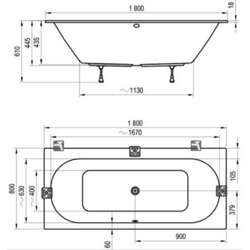 Caractéristiques de la baignoire rectangulaire 180x80 cm en acrylique, Blanc, Ravak City Slim (C921300000) :