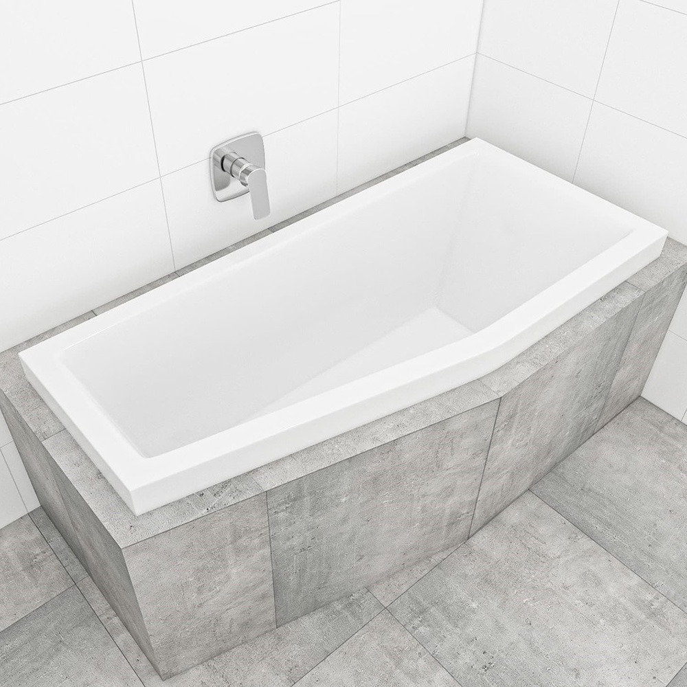 Siko 160x70 cm Aneta baignoire bain douche asymétrique en acrylique positionnement droite, sans pieds, blanc (AN1600PPLUS)