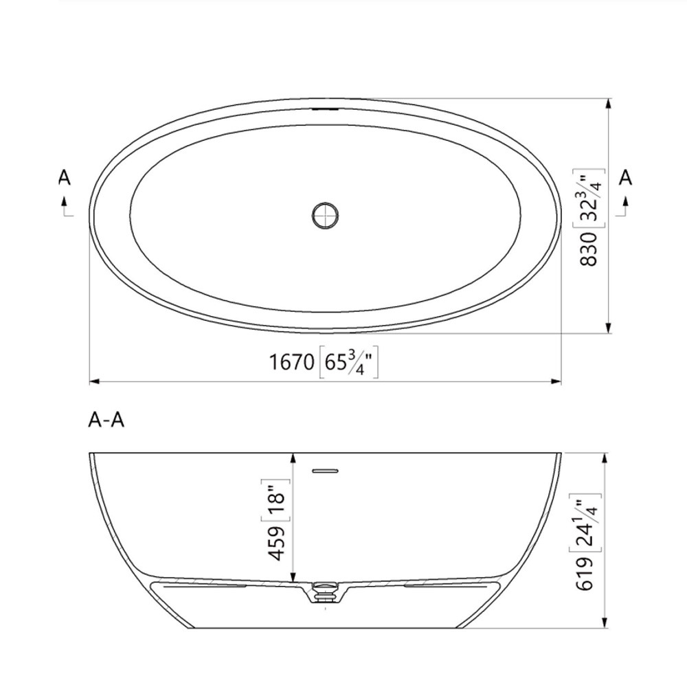 Caractéristiques de la Costa Baignoire ilot autoportante 167x83 cm en marbre coulé gauche et droite, blanc (SATCO1670):