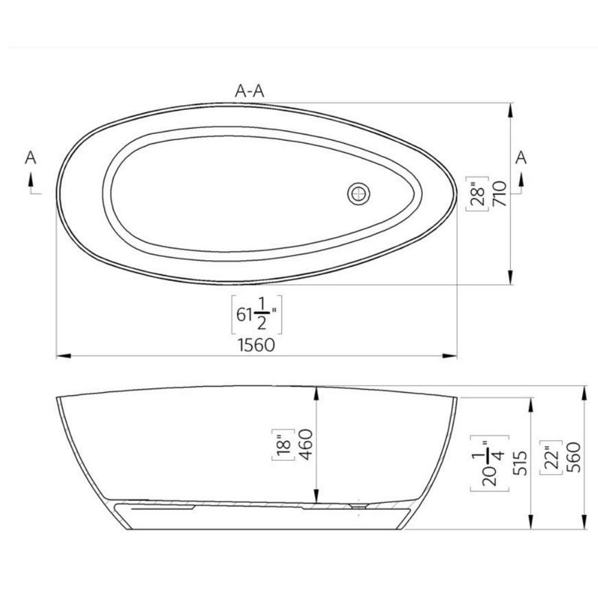 Caractéristiques de la Swiss Aqua Technologies Titta Baignoire îlot 156x71 en Marbre Coulé 210L, Blanc (SATTI1570):