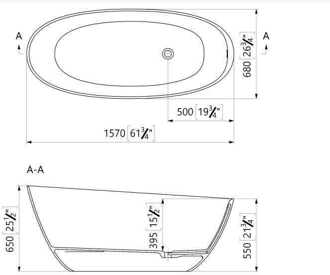 Caractéristiques de la Swiss Aqua Technologies Amika Baignoire îlot 157x68, en Marbre Coulé 210L, Blanc (SATAMI1570):