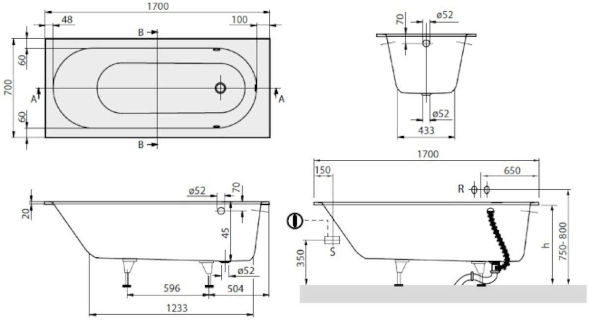 - Pieds baignoire:Fourni