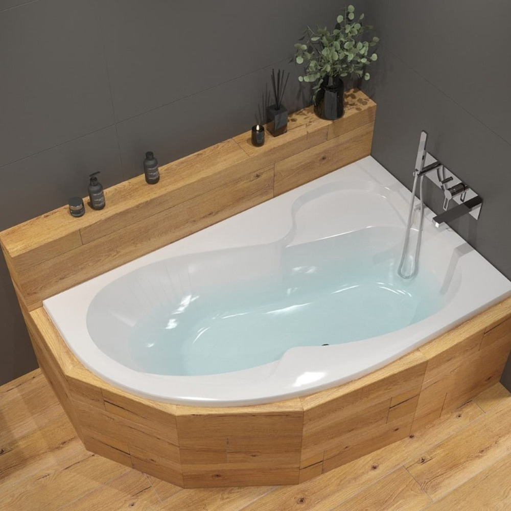 Siko 150x100 cm Fortuna Plus baignoire asymétrique en acrylique, droite, sans pieds, blanc (FO1500PPLUS)