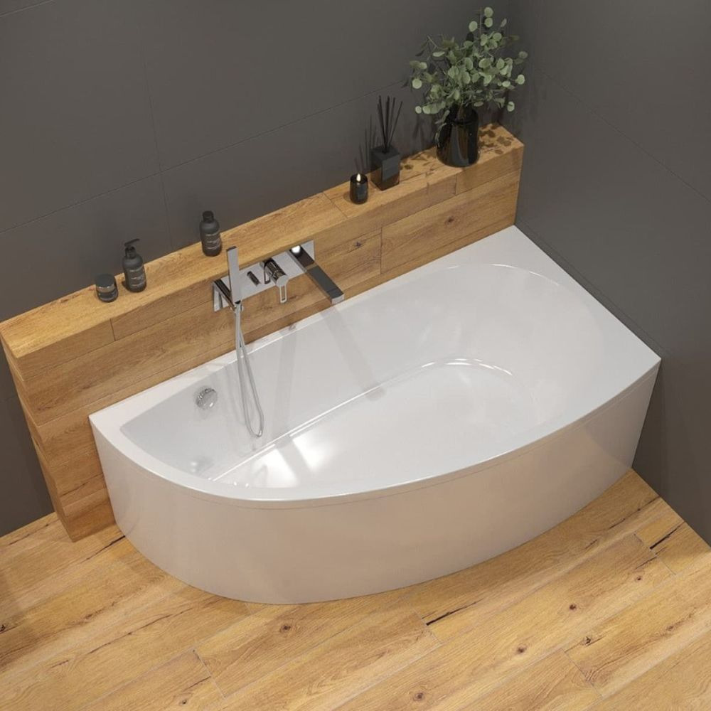 Siko Poli 160x80 cm Baignoire asymétrique en acrylique, droite, sans pieds, blanc (SATPOLI1600P)
